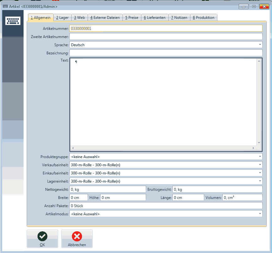 • Artikelstammblatt ► Preise ► Neu ► Preis : PART_Preis