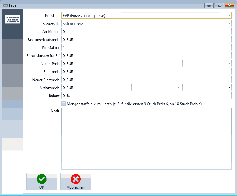 • Artikelstammblatt ► Preise ► Neu ► Preis : PART_Preis